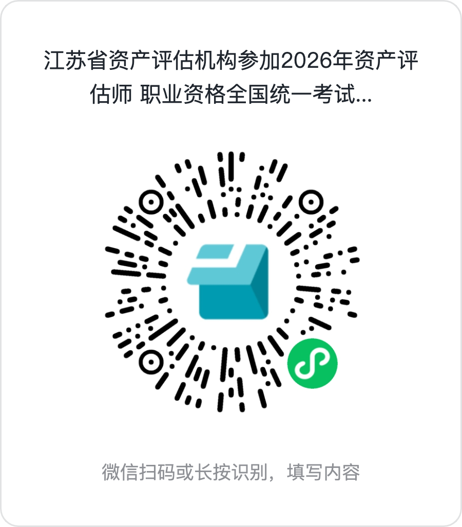 请各资产评估机构(含分支机构)根据本机构实际报名情况,于7月23日前扫码填写《江苏省资产评估机构参加2026年资产评估师职业资格全国统一考试情况统计表》。对积极推动从业人员参加资产评估师职业资格全国统一考试的机构,省、市评协将通过适当方式予以鼓励。